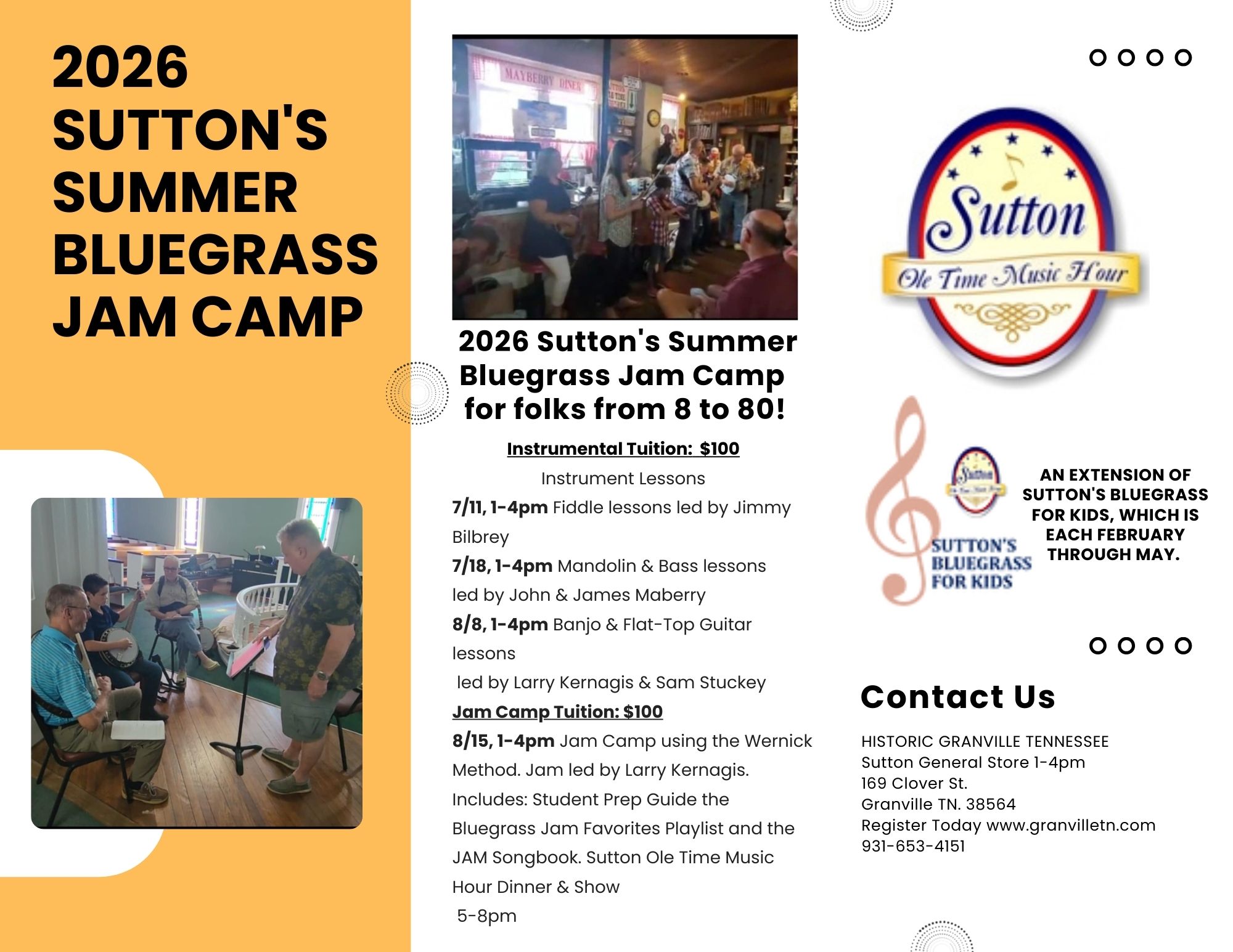 2026 Sutton's Summer Bluegrass Jam Camp